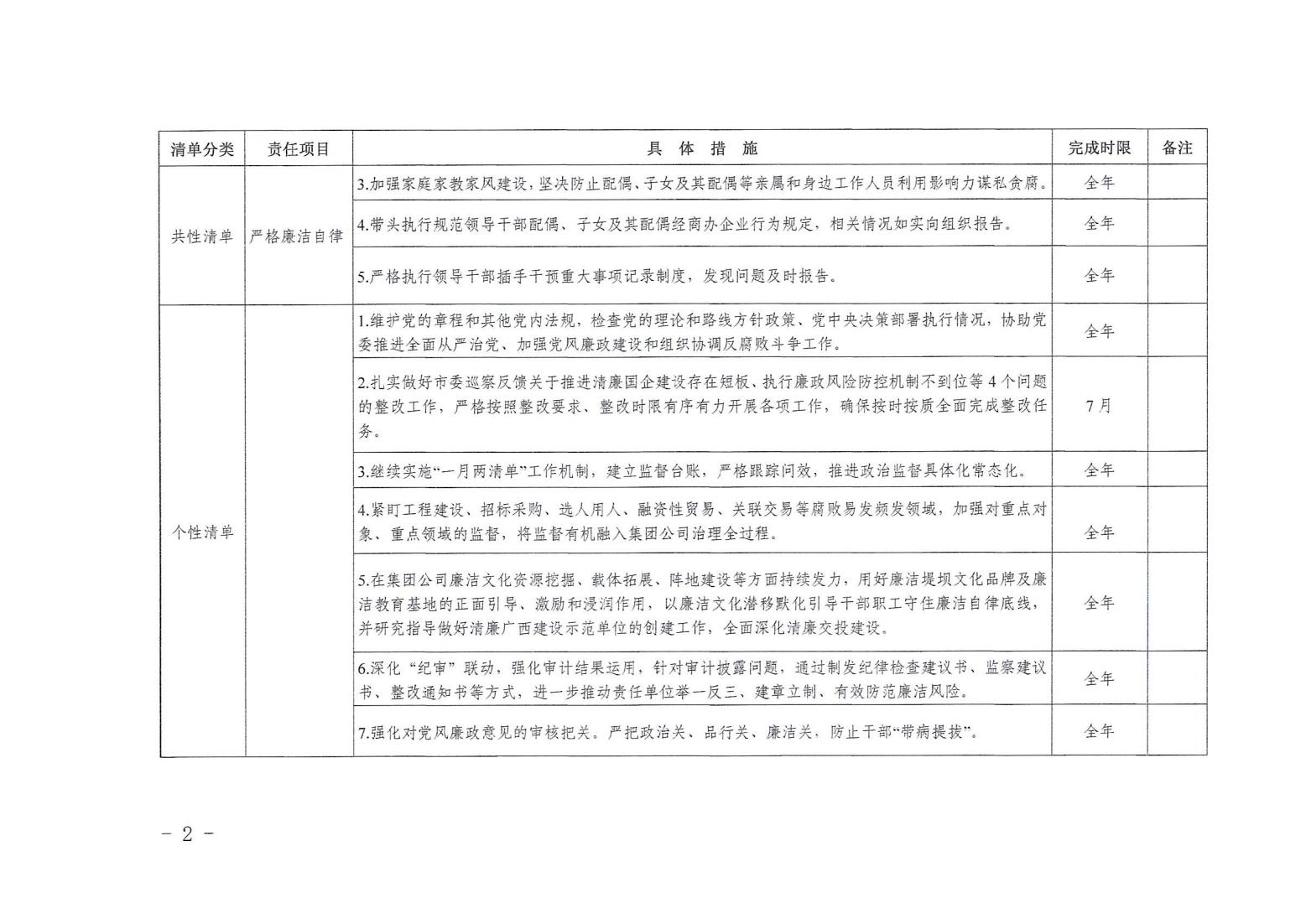 領(lǐng)導(dǎo)班子其他成員2024年度黨風廉政建設(shè)“一崗雙責”清單(二)