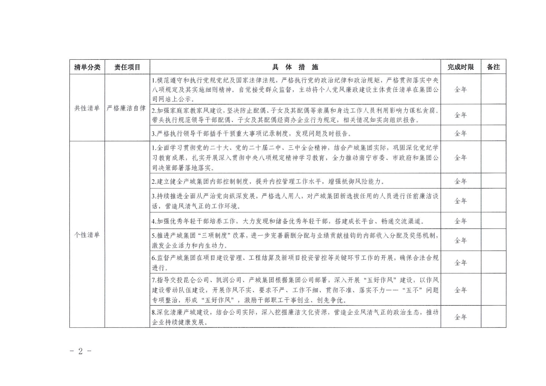 南寧交投集團(tuán)領(lǐng)導(dǎo)班子其他成員2025年度黨風(fēng)廉政建設(shè)“一崗雙責(zé)”清單(八)