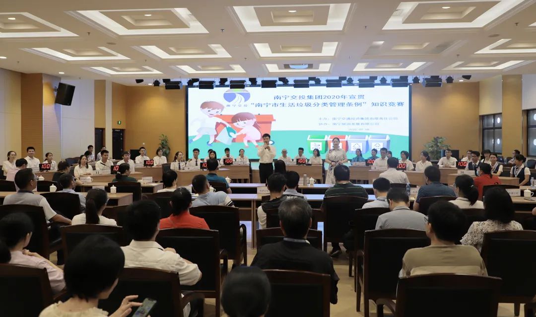 為貫徹落實(shí)習(xí)近平總書記對(duì)垃圾分類工作作出的重要指示精神,倡導(dǎo)廣大干部員工共同參與垃圾分類,樹立綠色的環(huán)保意識(shí),9月8日,集團(tuán)公司在四樓多功能報(bào)告廳舉行“垃圾分類我先行·創(chuàng)建文明齊參與”專題知識(shí)競賽。集團(tuán)公司領(lǐng)導(dǎo)農(nóng)明姬、張玉波、黃海燕,南寧市國資委綜合科科長謝雄勝以及市屬八大集團(tuán)相關(guān)人員出席比賽。 本次比賽各子公司共組成11支隊(duì)伍參加,比賽設(shè)置必答題、搶答題、互動(dòng)答題和加賽題四個(gè)環(huán)節(jié),題目涵蓋了《南寧市生...